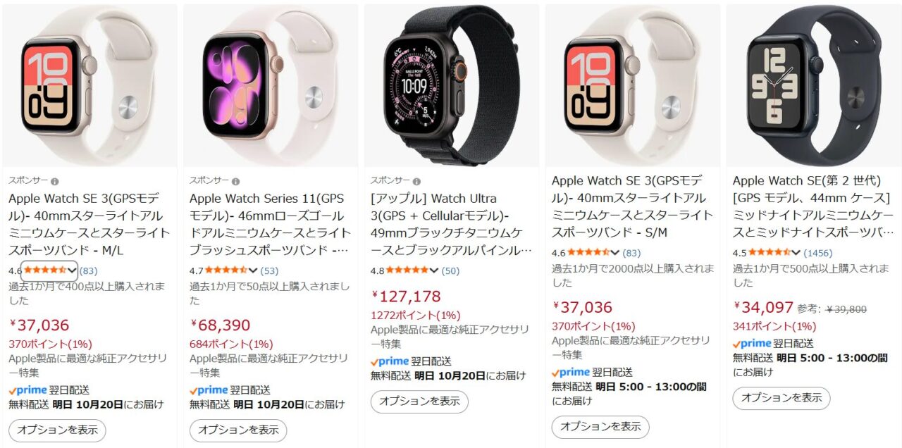 Apple Watchは他メーカーのスマートウォッチと比べても、2~3割ほど高い値段となっています。手頃なモデルが少なく、最新モデルは特に高価です。