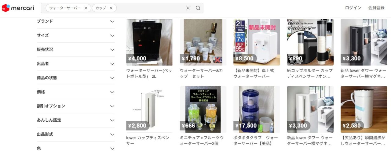 ウォーターサーバーに使える便利グッズはメルカリなどのフリマアプリでも購入できます。未使用のものが出品されていたりするので、お得に購入できるかもしれません。