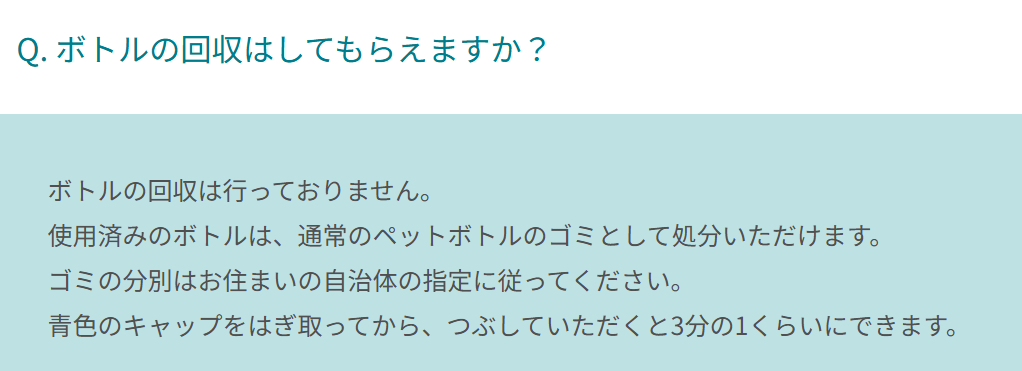 使い終わった空きボトルは資源ごみとして捨てられますが、地域によって分別方法が違います。ルールに合わせて適切に処分する手間が発生します。