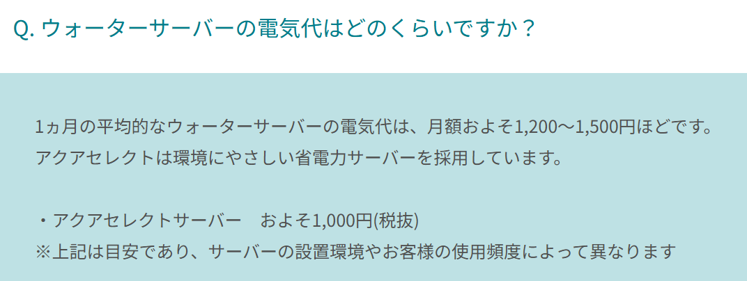 アクアセレクトのデメリットの4つ目は、「電気代がかかる」です。