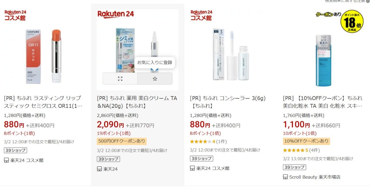 ちふれを定価(正規)で購入する場合は、公式オンラインショップや正規取扱店(ドラッグストアなど)で購入する方法です。