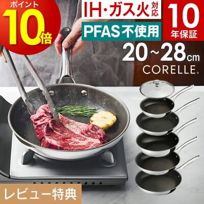 出典:【楽天市場】【レビューで選べる特典!】コレール フライパン Corelle Fry pan 20cm 24cm深型 26cm 28cm 蓋 ドウシシャ / 公式認定 10年保証 IH・ガス火対応 PFOA PFAS フリーフライパン 金属ベラ利用可 金たわし利用可 長持ち 炒め DuraNano デュラナノ 強火 耐久性 母の日(生活雑貨とフライパンのエクリティ) | みんなのレビュー·口コミ