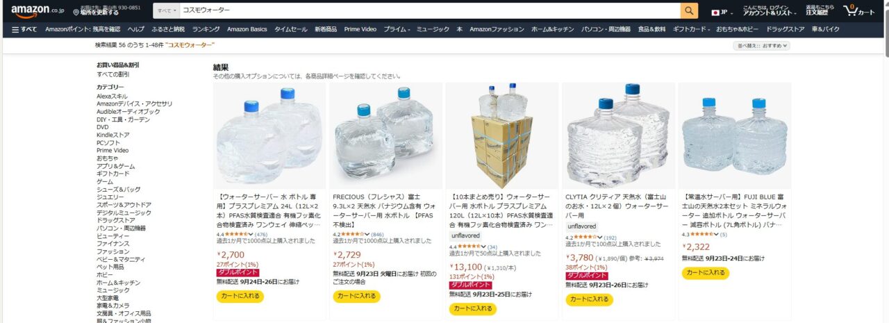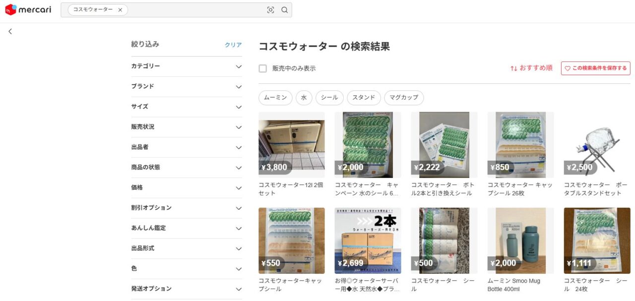 コスモウォーターはメルカリなどのフリマアプリでも購入できます。未使用のものが出品されていたりするので、お得に購入できるかもしれません。