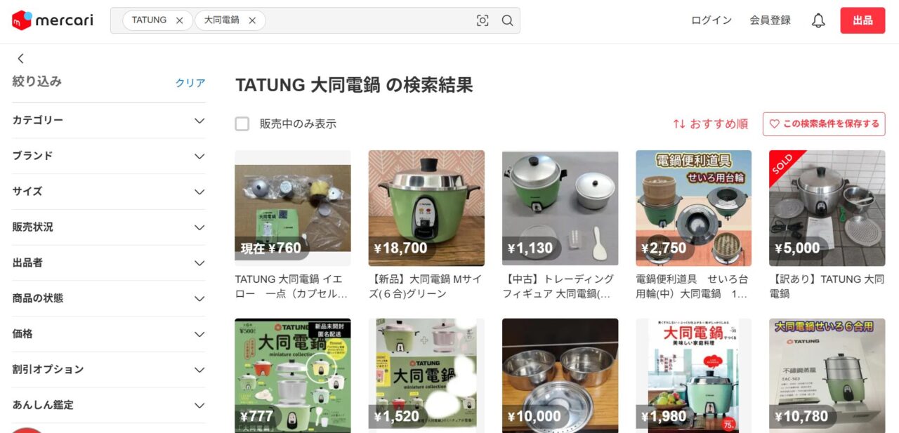 大同電鍋はメルカリなどのフリマアプリでも購入できます。未使用のものが出品されていたりするので、お得に購入できるかもしれません。