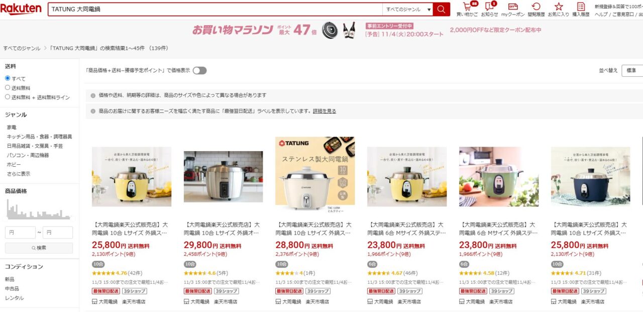 大同電鍋はどこで買える?どこで買うのが安い?