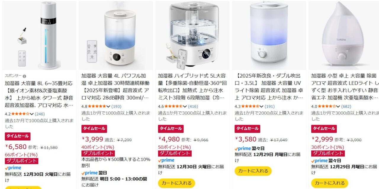 - 加湿パワーは控えめなことが多い。