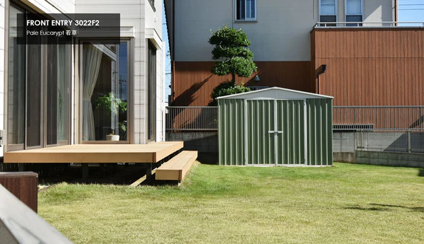 日本の一般的なグレー系の物置とは異なり、カラーバリエーションが豊富でマットな質感を持つため、庭や家の外観の一部として「魅せるエクステリア」になる点が高く評価されています。