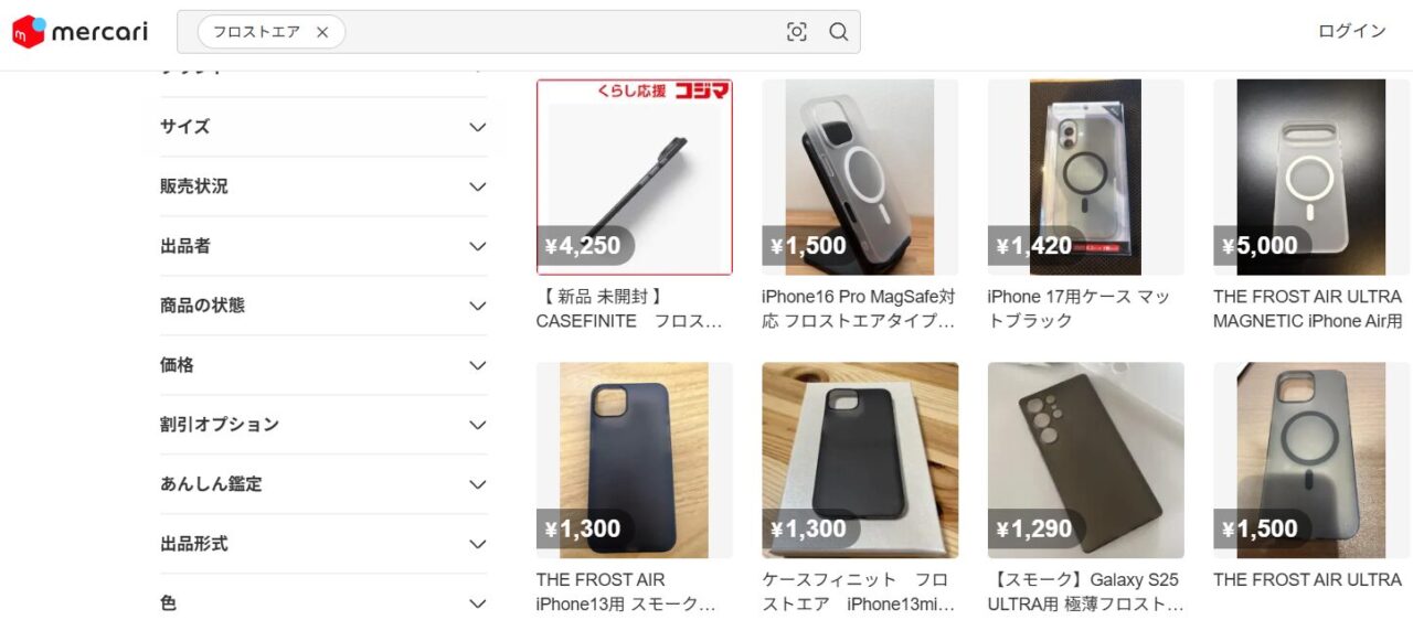 フロストエアはメルカリなどのフリマアプリでも購入できます。未使用のものが出品されていたりするので、お得に購入できるかもしれません。