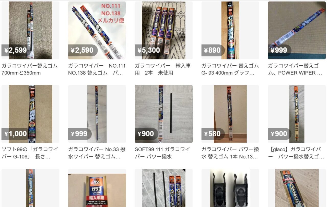 ガラコワイパーはメルカリなどのフリマアプリでも購入できます。未使用のものが出品されていたりするので、お得に購入できるかもしれません。