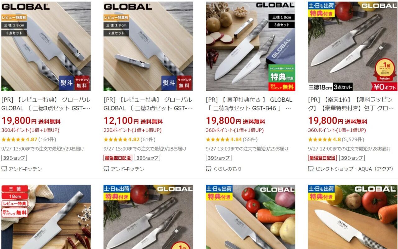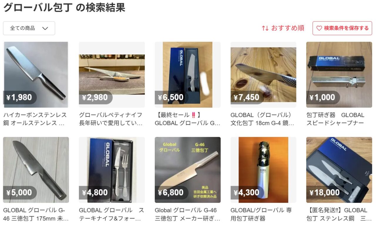 グローバル包丁はメルカリなどのフリマアプリでも購入できます。未使用のものが出品されていたりするので、お得に購入できるかもしれません。