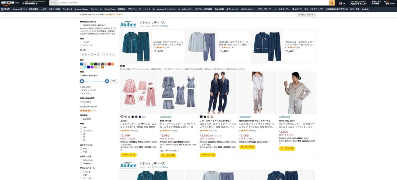 Amazonでは、GU サテンパジャマの販売を見つけることはできませんでした。