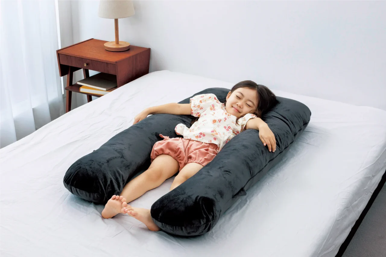 体全体をふんわり包み込むので、まるでぬいぐるみに抱きしめられているような安心感が得られます。他の枕にはないフィット感があるのでリラックスしやすく、心も落ち着いて眠りにつきやすくなります。