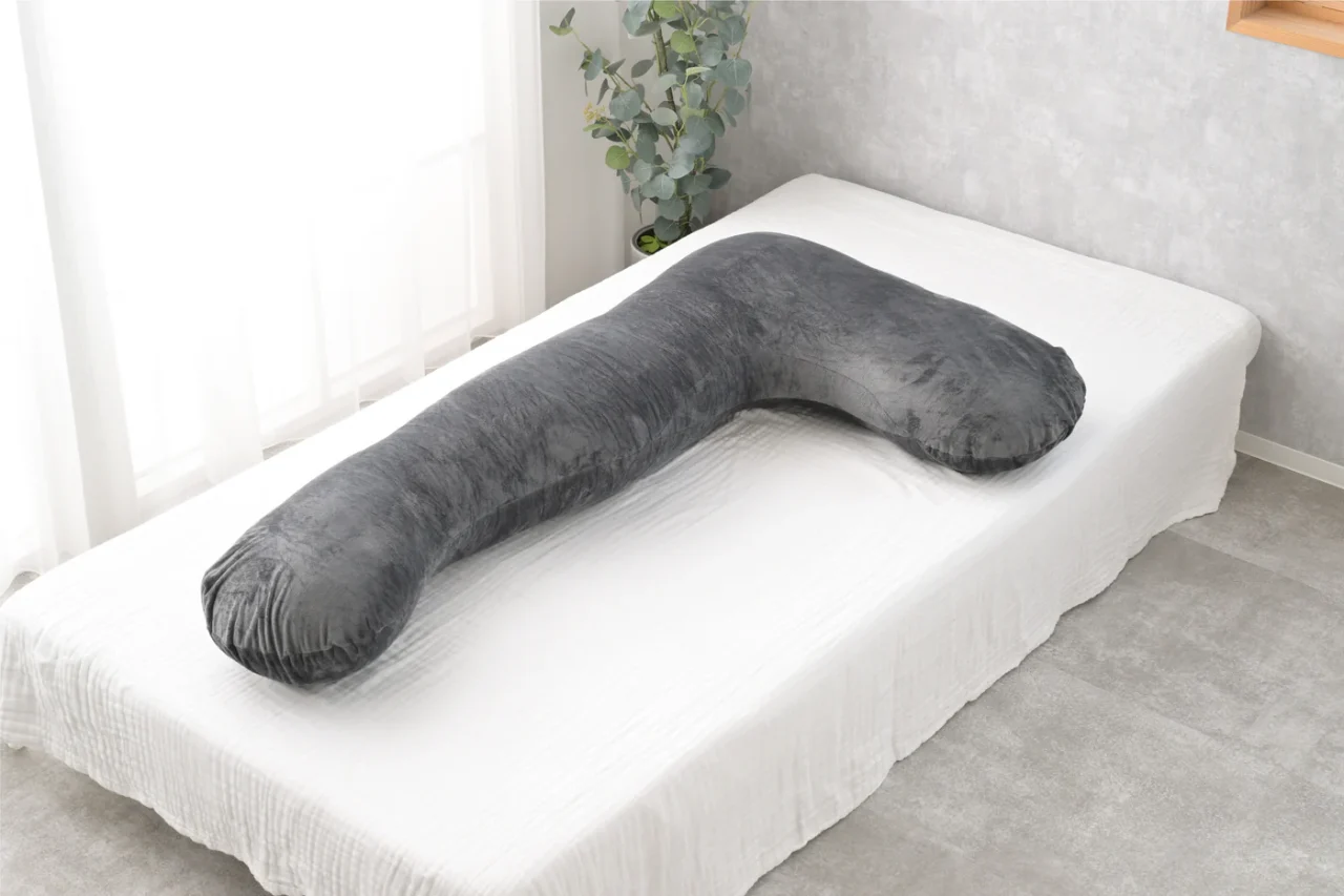 腰痛に悩んで去年の年末に買った抱き枕、半年ほど使ってみて本当に具合が良いです。普通の枕に比べてポジション調整の自由度が格段に高いので、無理なくいい感じの場所を見つけて横向きに寝られるのが合ってるみたいです。@hugmotti_jp