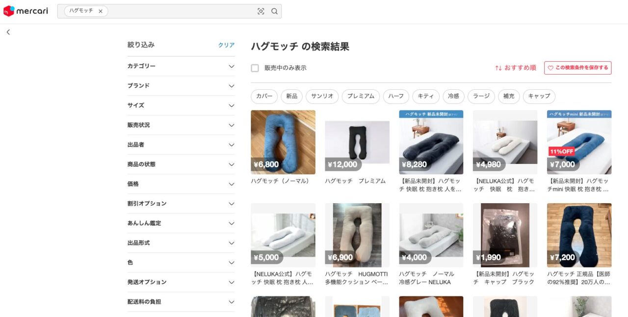 ハグモッチはメルカリなどのフリマアプリでも購入できます。未使用のものが出品されていたりするので、お得に購入できるかもしれません。