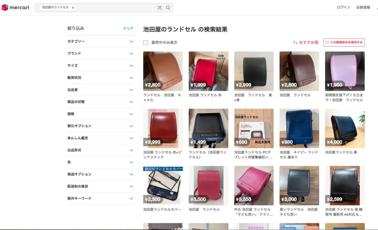 池田屋のランドセルはメルカリなどのフリマアプリでも購入できます。未使用のものが出品されていたりするので、お得に購入できるかもしれません。