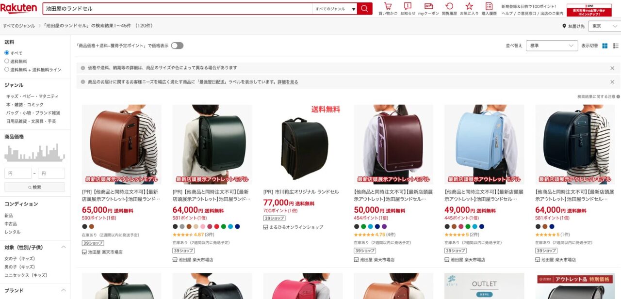 池田屋のランドセルを定価(正規)で購入する場合は、公式オンラインショップ、直営店舗、期間限定の展示会で購入できます。