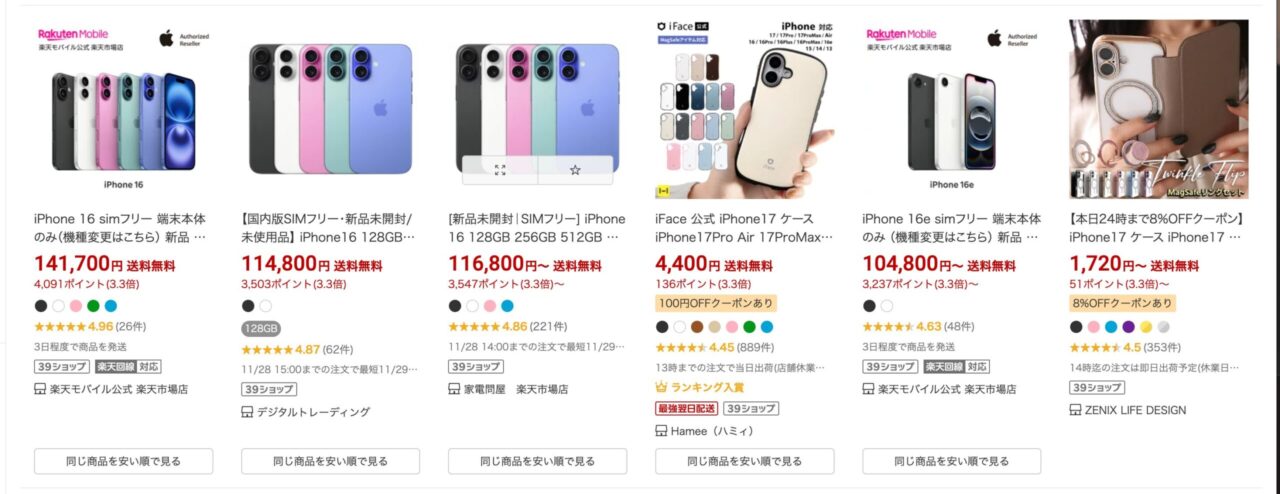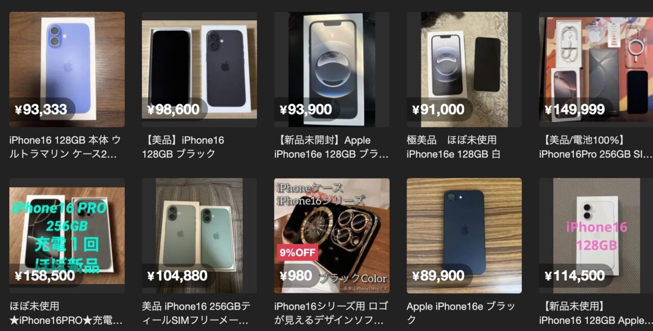 iphone16はメルカリなどのフリマアプリでも購入できます。未使用のものが出品されていたりするので、お得に購入できるかもしれません。