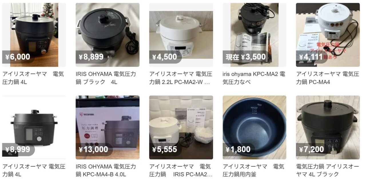 アイリスオーヤマの電気圧力鍋はメルカリなどのフリマアプリでも購入できます。未使用のものが出品されていたりするので、お得に購入できるかもしれません。
