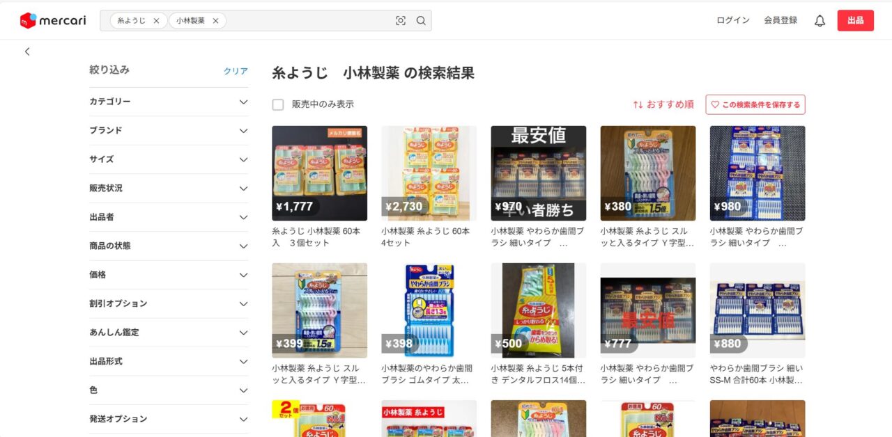 糸ようじはメルカリなどのフリマアプリでも購入できます。未使用のものが出品されていたりするので、お得に購入できるかもしれません。