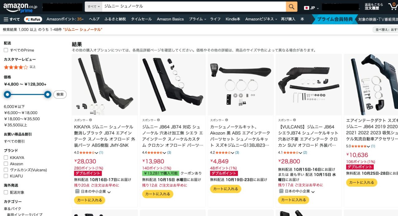 ジムニーのシュノーケルはどこで買える?どこで買うのが安い?