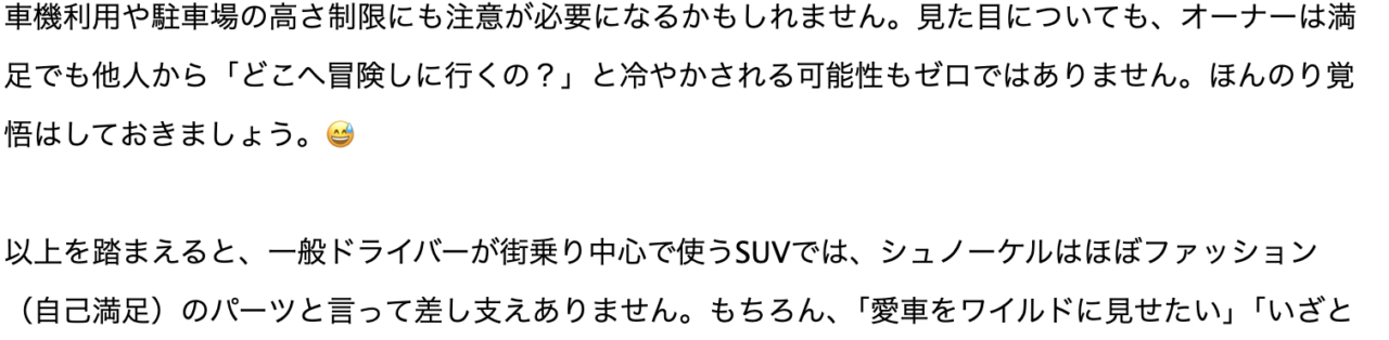 結論として、ジムニーのシュノーケルをおすすめできない人、おすすめできる人は以下の通りだよ!