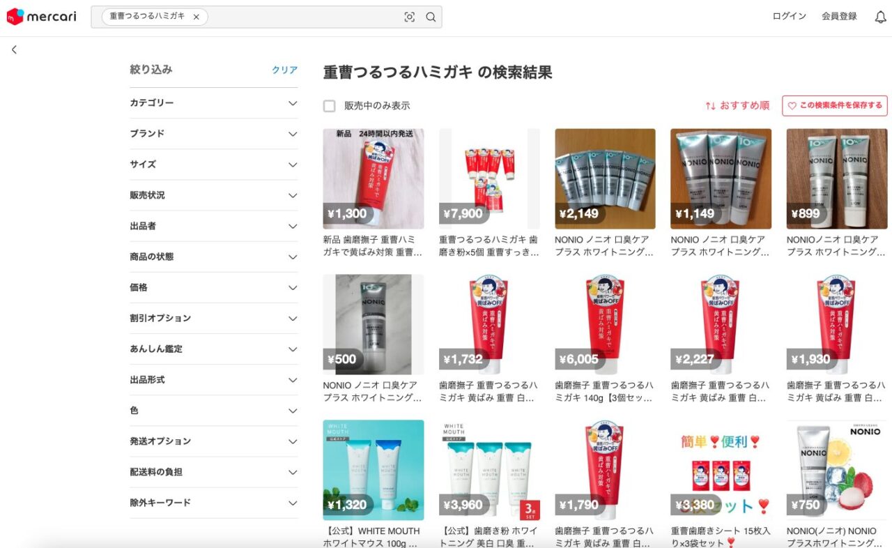 重曹つるつるハミガキはメルカリなどのフリマアプリでも購入できます。未使用のものが出品されていたりするので、お得に購入できるかもしれません。