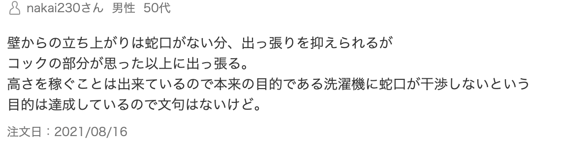 商品写真で見るよりも実物は厚みがあり、「壁ピタ」という名称から完全にフラットになることを想像していると、意外とコック部分が出っ張ることに不満を感じるユーザーがいます。