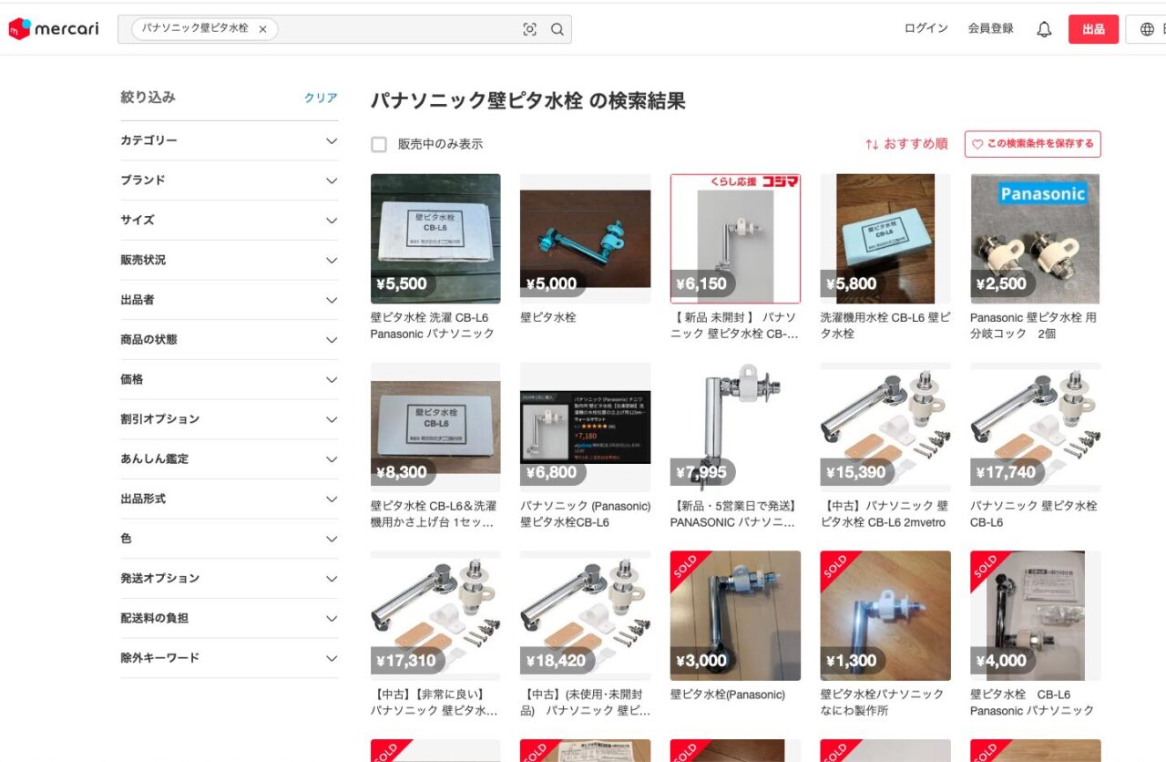 壁ピタ水栓はメルカリなどのフリマアプリでも購入できます。未使用のものが出品されていたりするので、お得に購入できるかもしれません。