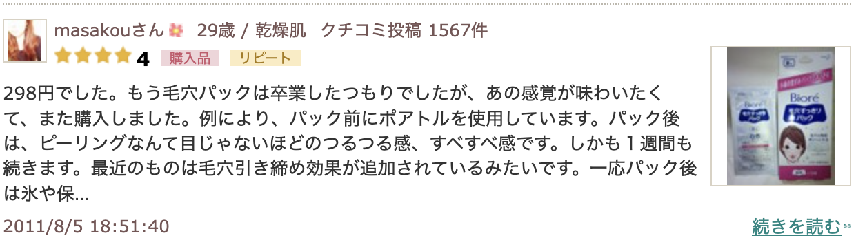 毛穴すっきりパックの良い口コミ・評判をいくつか紹介します。
