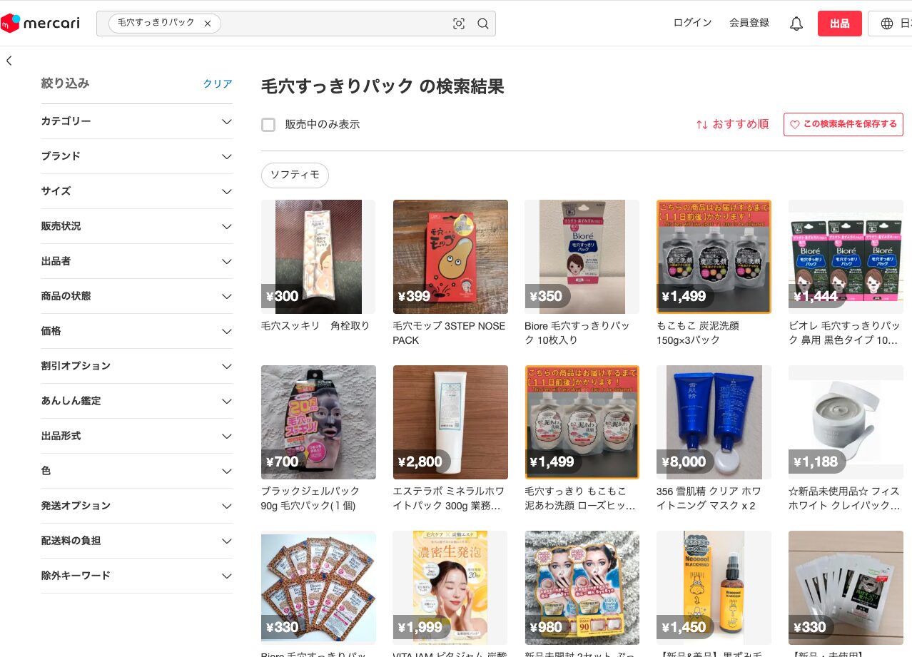 毛穴すっきりパックはメルカリなどのフリマアプリでも購入できます。未使用のものが出品されていたりするので、お得に購入できるかもしれません。