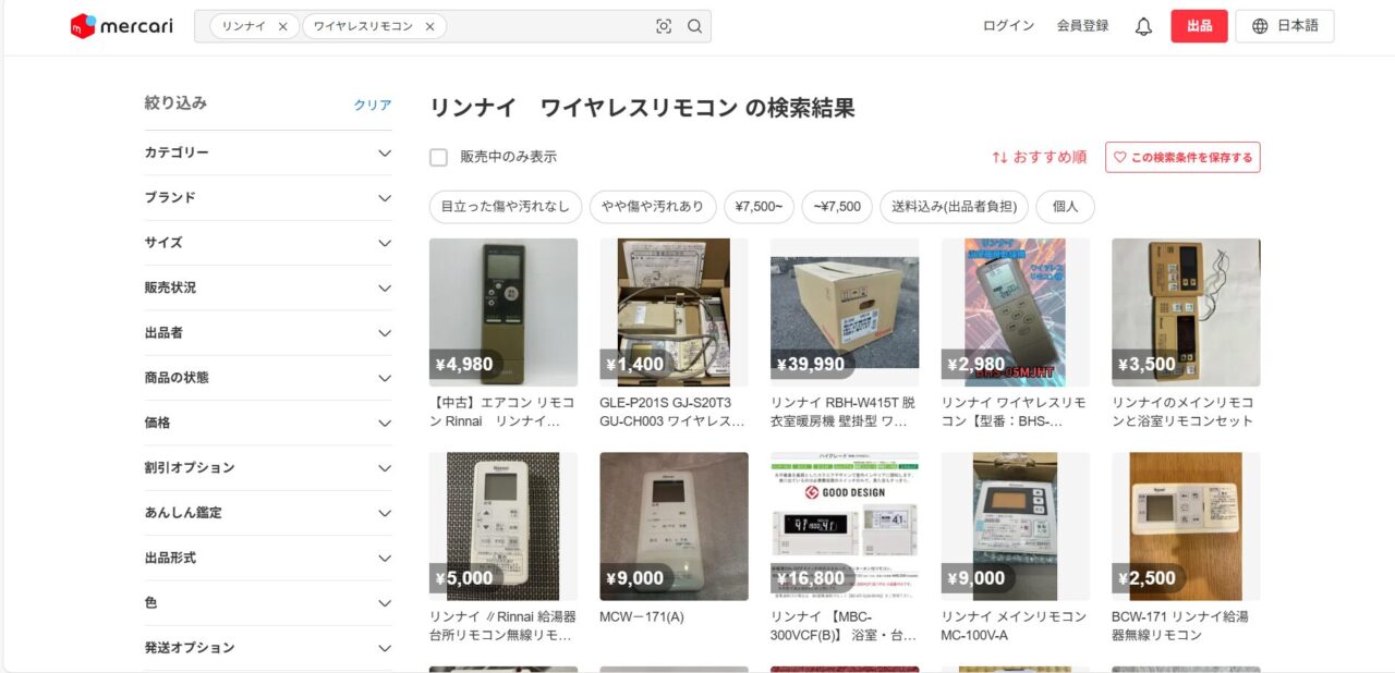 給湯器のワイヤレスリモコンはメルカリなどのフリマアプリでも購入できます。未使用のものが出品されていたりするので、お得に購入できるかもしれません。