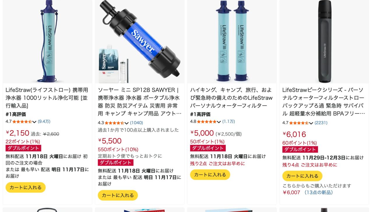 | 価格相場 | 3,000〜25,000円程度 。 (日本国内での実売価格はこの範囲を外れることがある) 出典:ライフストロー公式 ※価格相場はリサーチした時点であり、日々変動します |