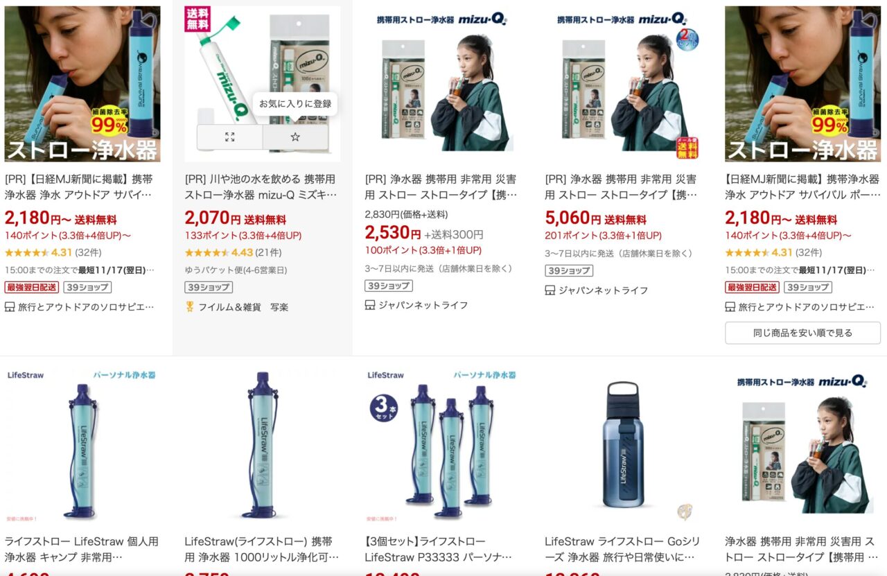 ライフストローはメルカリなどのフリマアプリでも購入できます。未使用のものが出品されていたりするので、お得に購入できるかもしれません。