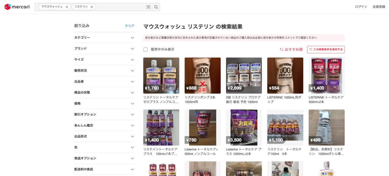 リステリンはメルカリなどのフリマアプリでも購入できます。未使用のものが出品されていたりするので、お得に購入できるかもしれません。