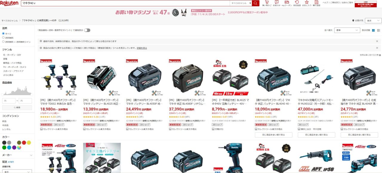 マキタ40VMaxを定価(正規)で購入する場合は、マキタ公式サイトや正規販売店での購入です。
