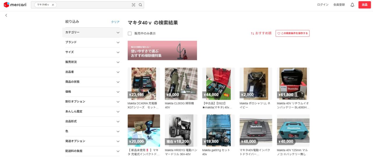 マキタ40VMaxはメルカリなどのフリマアプリでも購入できます。未使用のものが出品されていたりするので、お得に購入できるかもしれません。