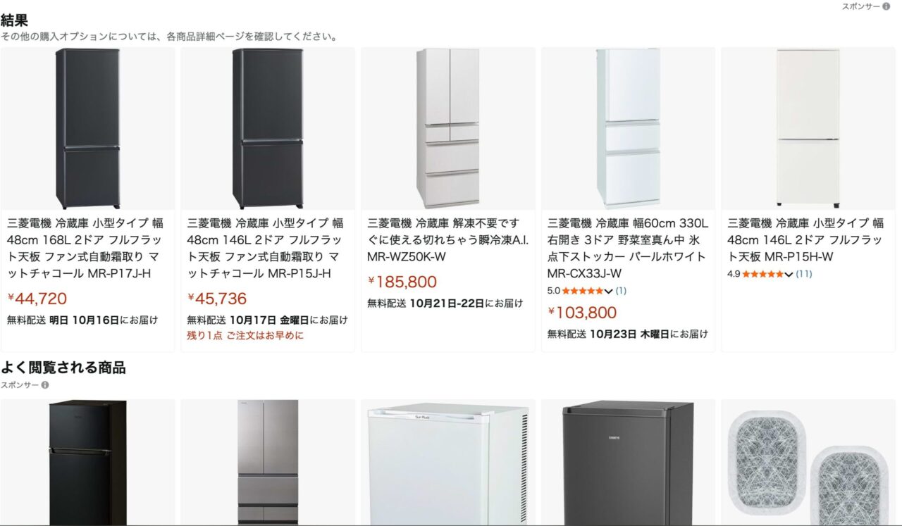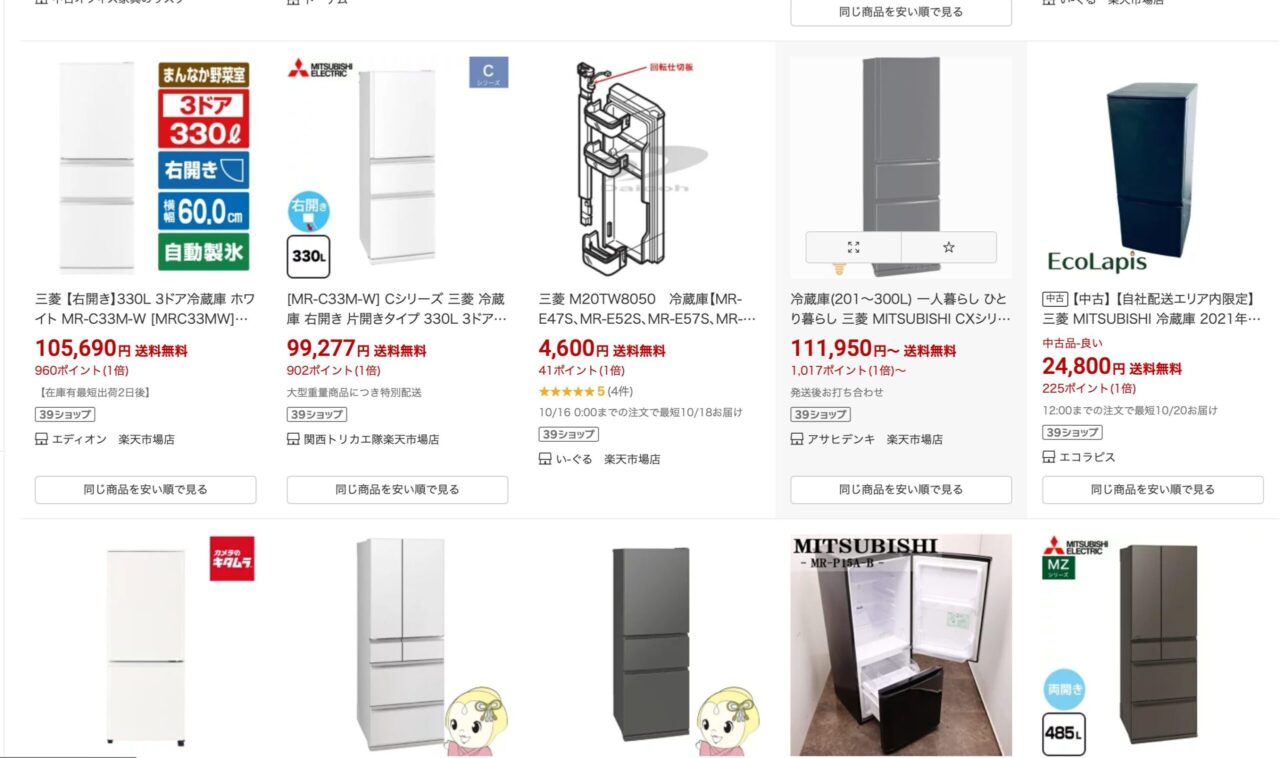 三菱の冷蔵庫はメルカリなどのフリマアプリでも購入できます。未使用のものが出品されていたりするので、お得に購入できるかもしれません。