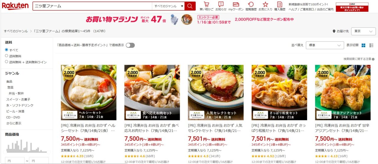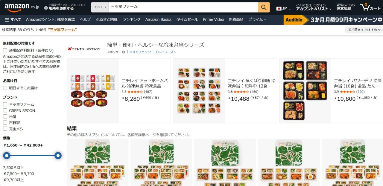 三ツ星ファームは、コンビニ弁当や他の冷凍宅配弁当と比べると、1食あたりの価格が少し高めになりやすいです。