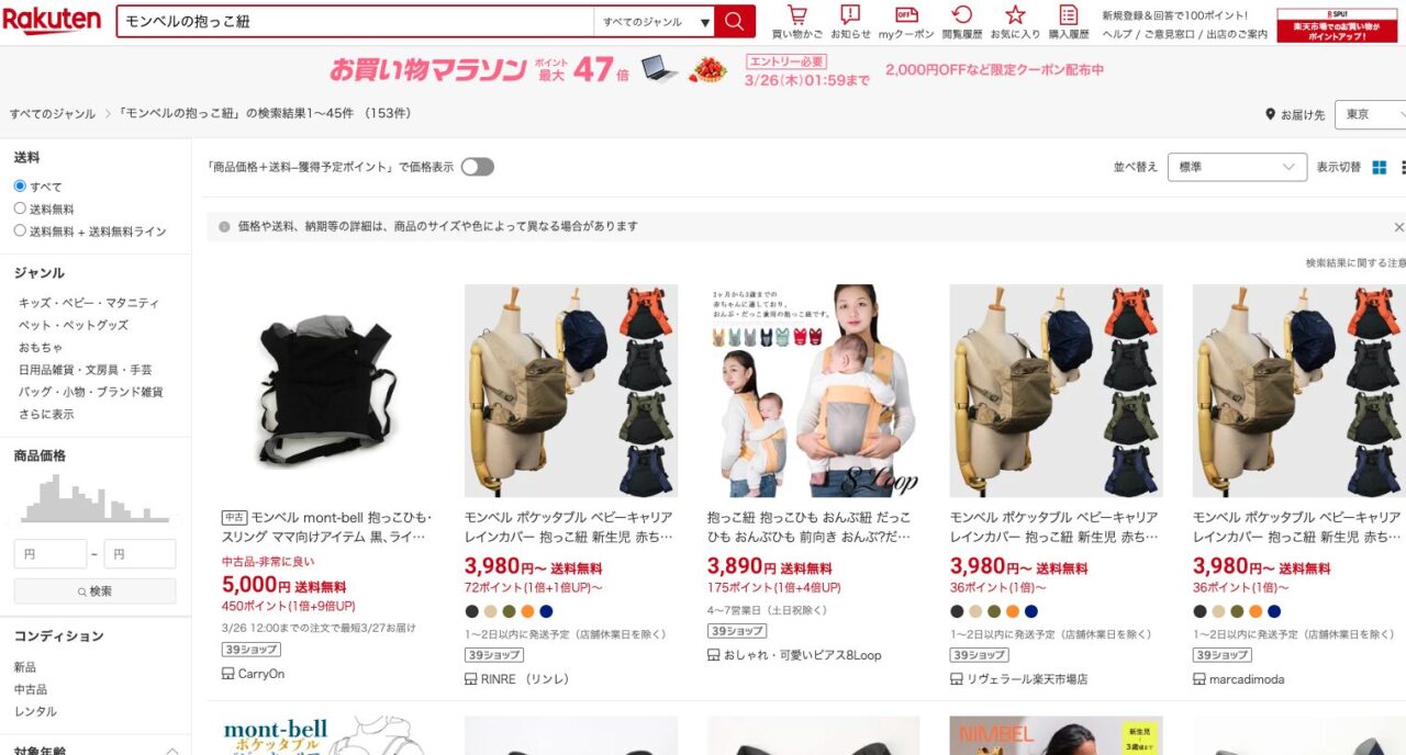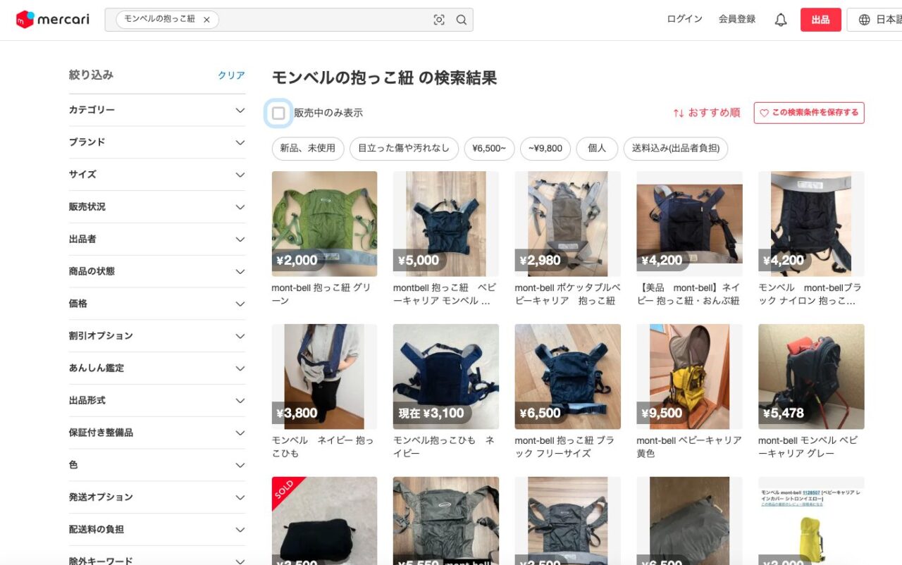 モンベルの抱っこ紐はメルカリなどのフリマアプリでも購入できます。未使用のものが出品されていたりするので、お得に購入できるかもしれません。