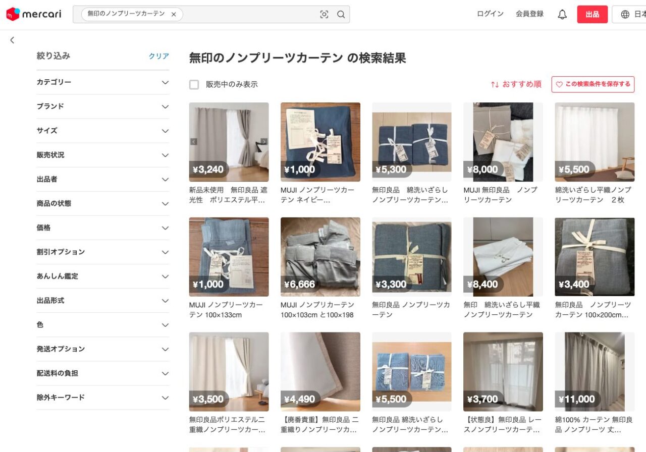 無印のノンプリーツカーテンはメルカリなどのフリマアプリでも購入できます。未使用のものが出品されていたりするので、お得に購入できるかもしれません。