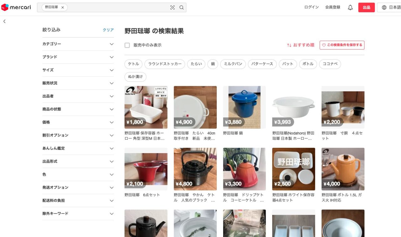 野田琺瑯はメルカリなどのフリマアプリでも購入できます。未使用のものが出品されていたりするので、お得に購入できるかもしれません。