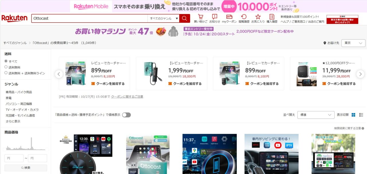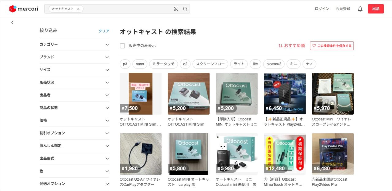 オットキャストはメルカリなどのフリマアプリでも購入できます。未使用のものが出品されていたりするので、お得に購入できるかもしれません。