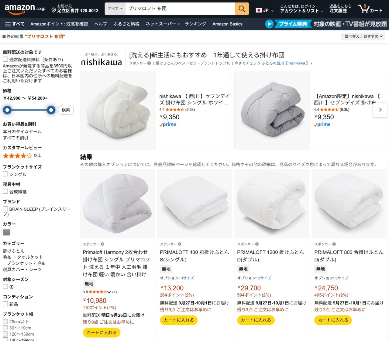 プリマロフトの布団はどこで買える?どこで買うのが安い?
