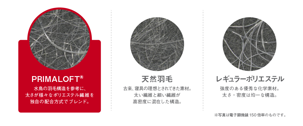 プリマロフトを使っていて、良かったのでもう一枚とこちらで購入しましたが、別の品のように感じます。 表地の肌触りも違い、他の方もレビューに書かれていましたが、プリマロフトのタグがありません。 日本製であってもプリマロフトの名前で販売しているならタグがあるはず。 商品の洗濯タグ?にも書かれていません。 また使われている商品の写真よりも黄色い生地です。 梱包も内袋が開封された状態で厚手のビニールに入っておりました。 また、別の品と同時購入しましたが、別々の業者からの配送でとても面倒でした。 正直、いろいろ残念です。