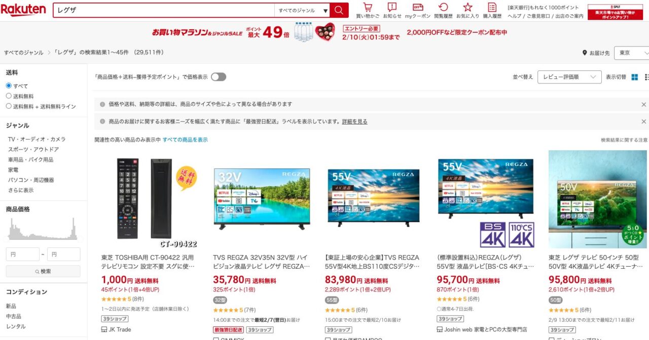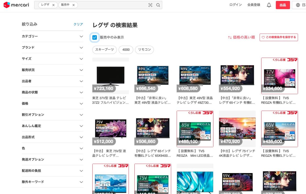 レグザはメルカリなどのフリマアプリでも購入できます。未使用のものが出品されていたりするので、お得に購入できるかもしれません。