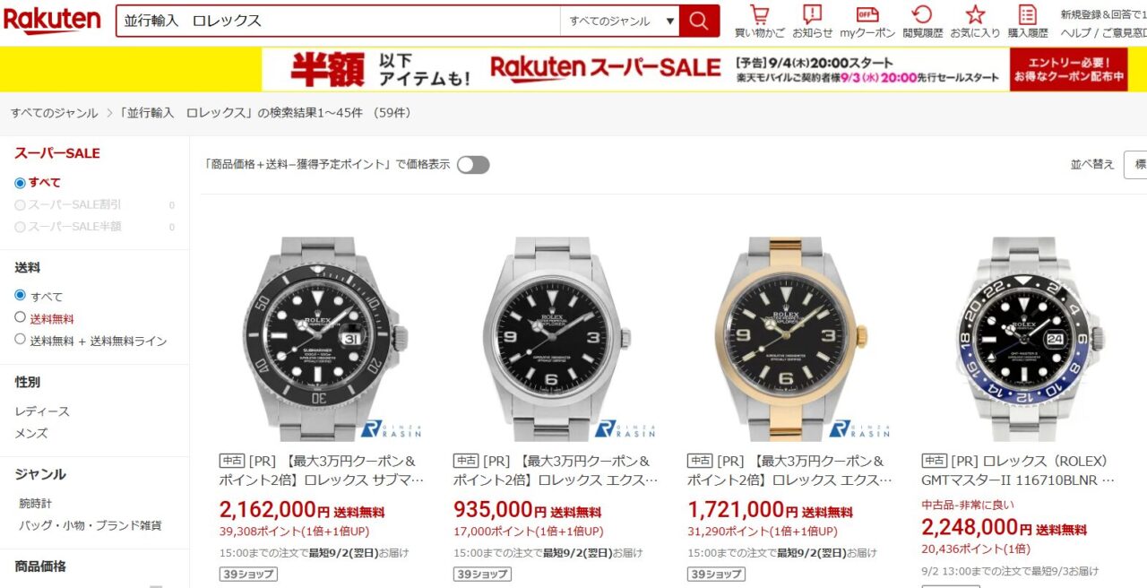 並行輸入のロレックスを定価(正規)で購入する場合は、日本ロレックスの正規販売店での購入です。この場合は、並行輸入ではなく正規品での購入となりますので、並行輸入のロレックスをお得に購入したい人はAmazonや楽天などECサイトで探して購入すると良さそうです。
