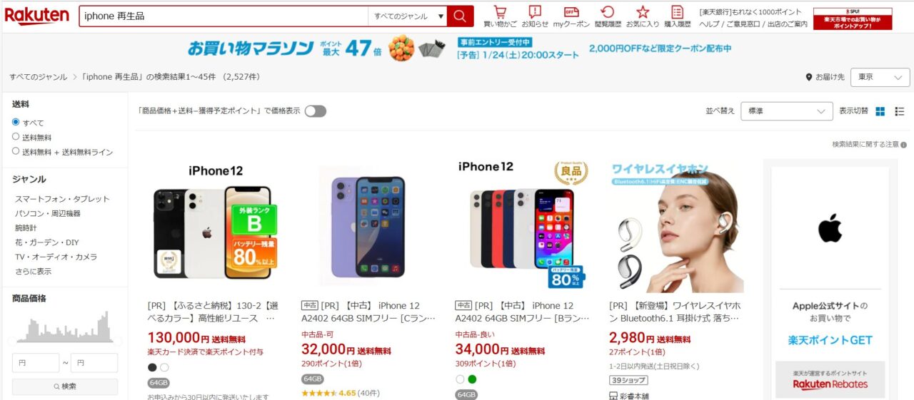 再生品のiphoneはメルカリなどのフリマアプリでも購入できます。未使用のものが出品されていたりするので、お得に購入できるかもしれません。