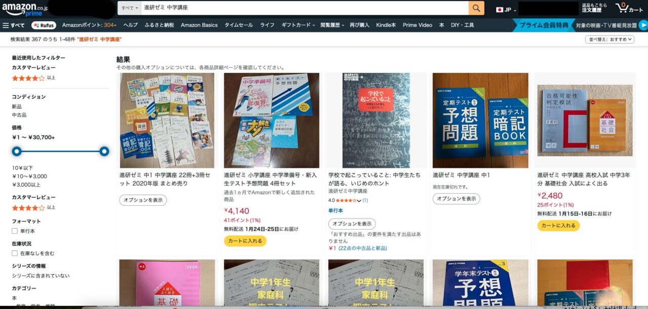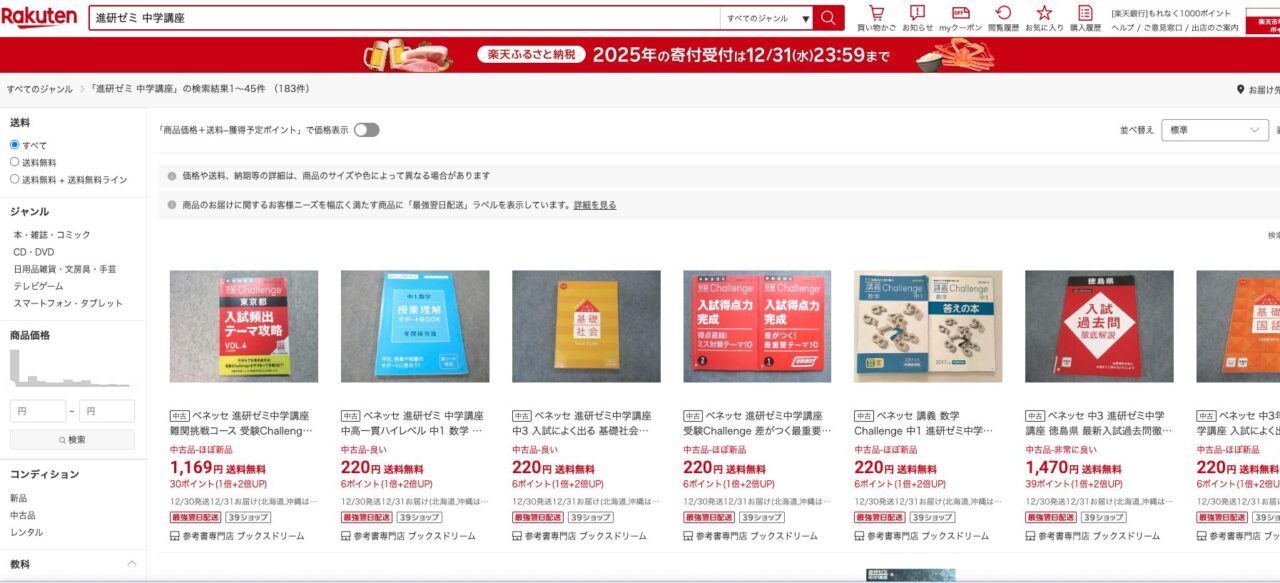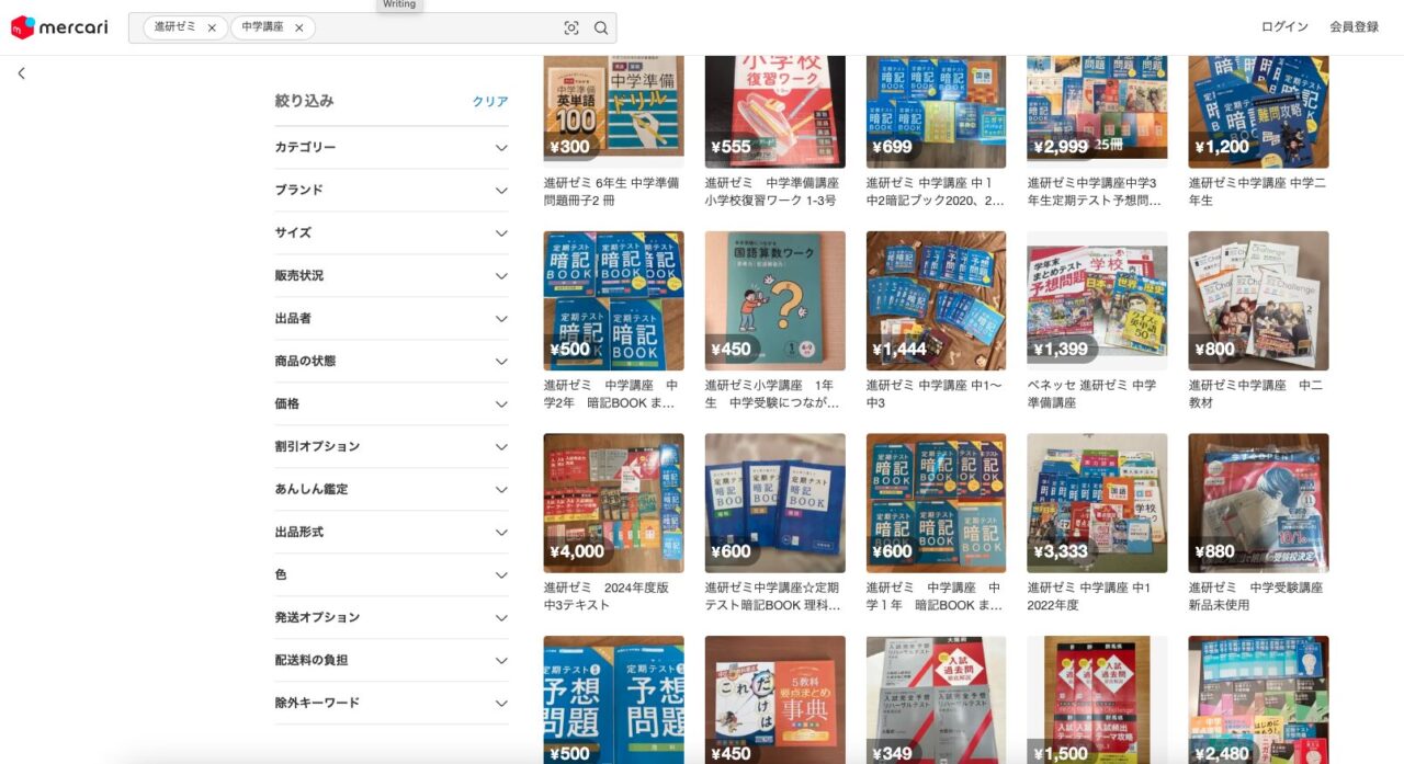 進研ゼミ 中学講座はメルカリなどのフリマアプリでも購入できます。未使用のものが出品されていたりするので、お得に購入できるかもしれません。