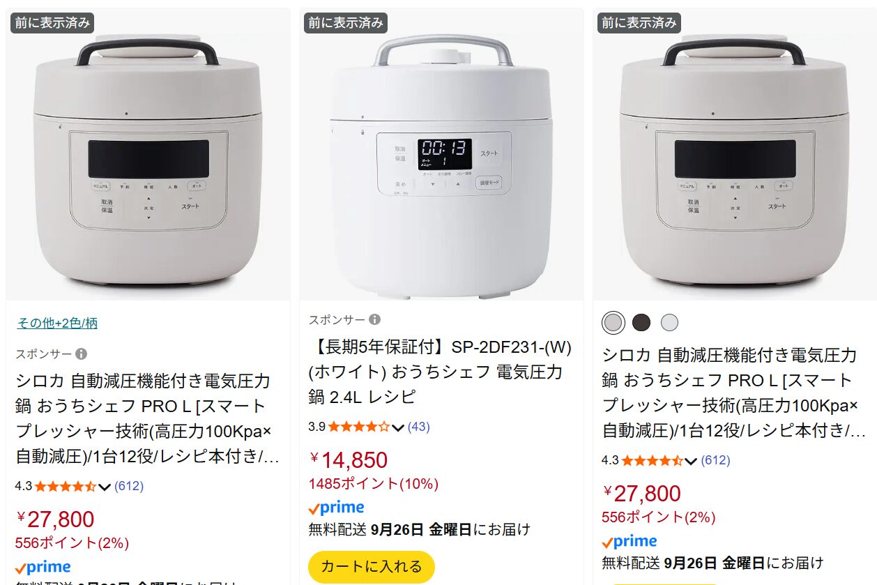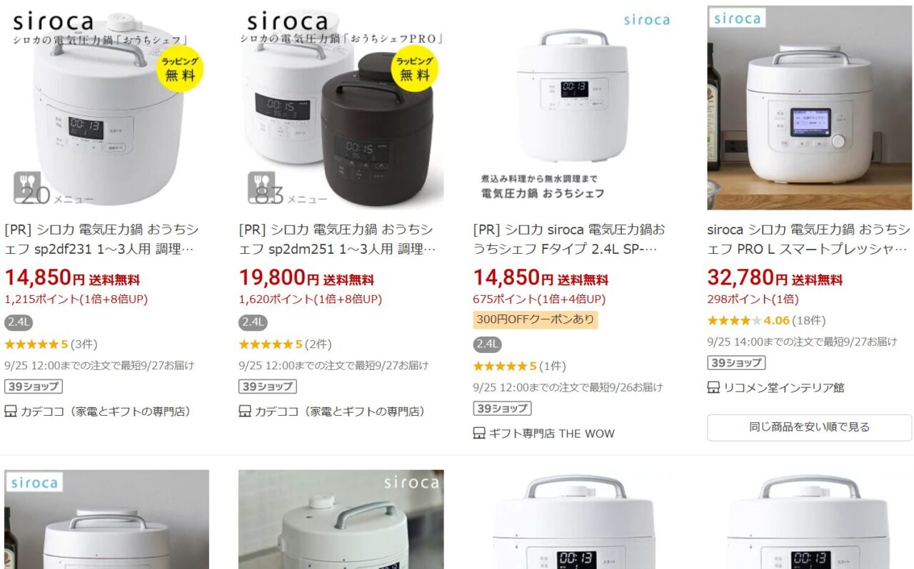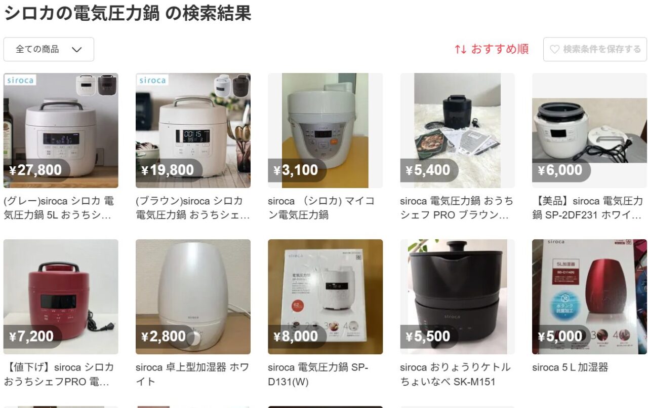 シロカの電気圧力鍋はメルカリなどのフリマアプリでも購入できます。未使用のものが出品されていたりするので、お得に購入できるかもしれません。