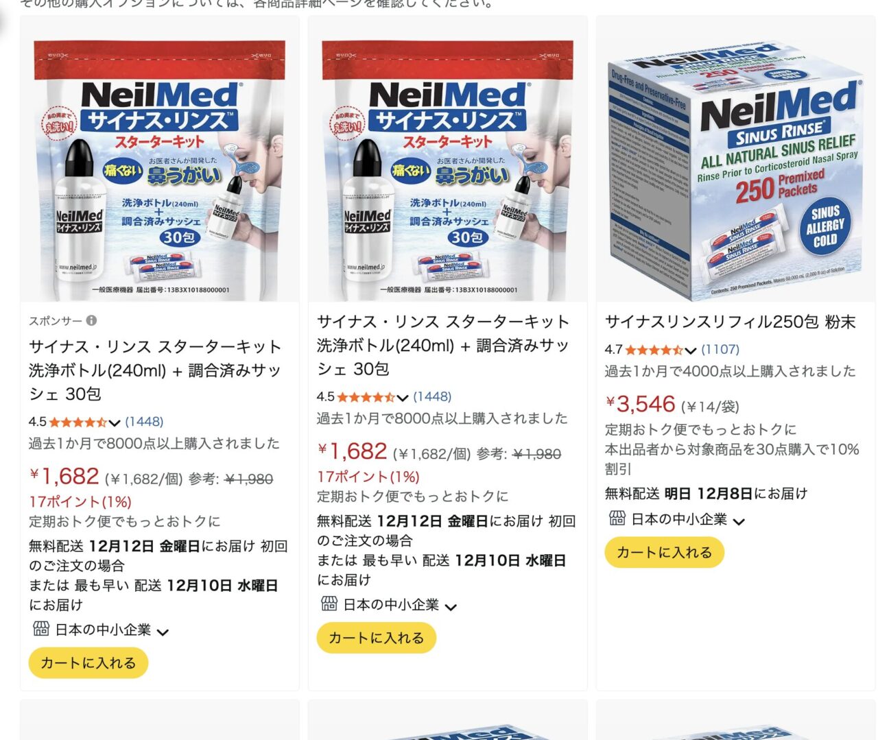 コロナ後遺症対策と風邪予防に鼻うがいしてるんだけど、生理食塩水を作るためのサイナスリンスっていうのがめっちゃ高い!